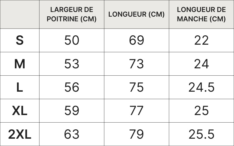 Pour plus de précisions, consultez le guide des tailles.